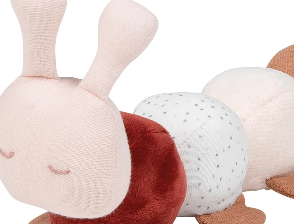 Peluche chenille aux différentes matières velours et tricot très douce et sons pour stimuler bébé