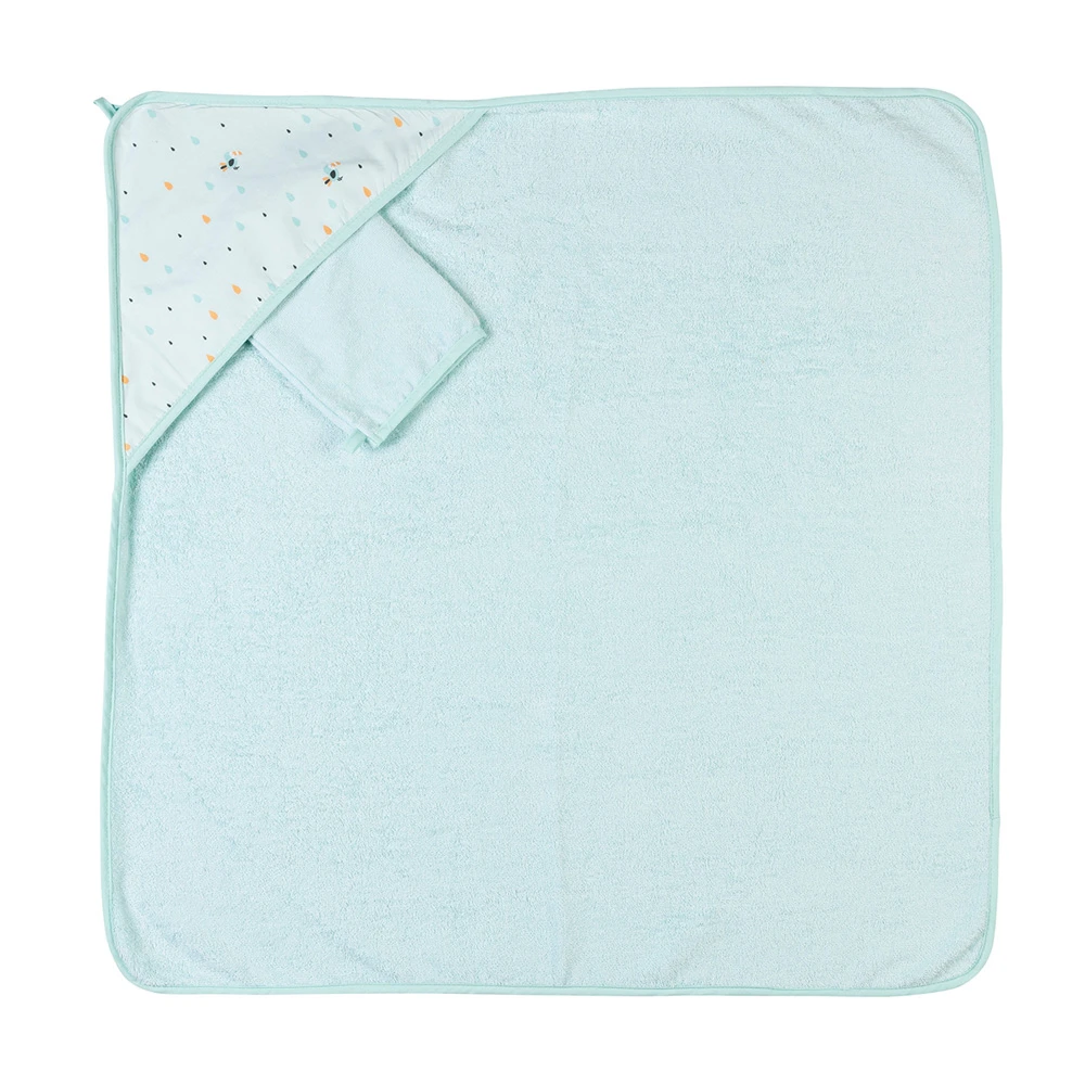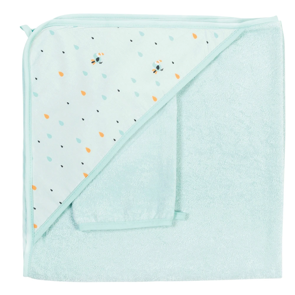 La cape de bain et son gant de toilette sont fabriqués en éponge, une matière particulièrement douce. Votre bambin pourra sortir du bain avec un plaisir absolu jusqu’à 24 mois.